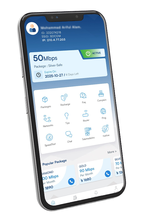 Manage your internet account, pay bills, upgrade packages, troubleshoot issues, and get 24/7 support — all from one smart app.